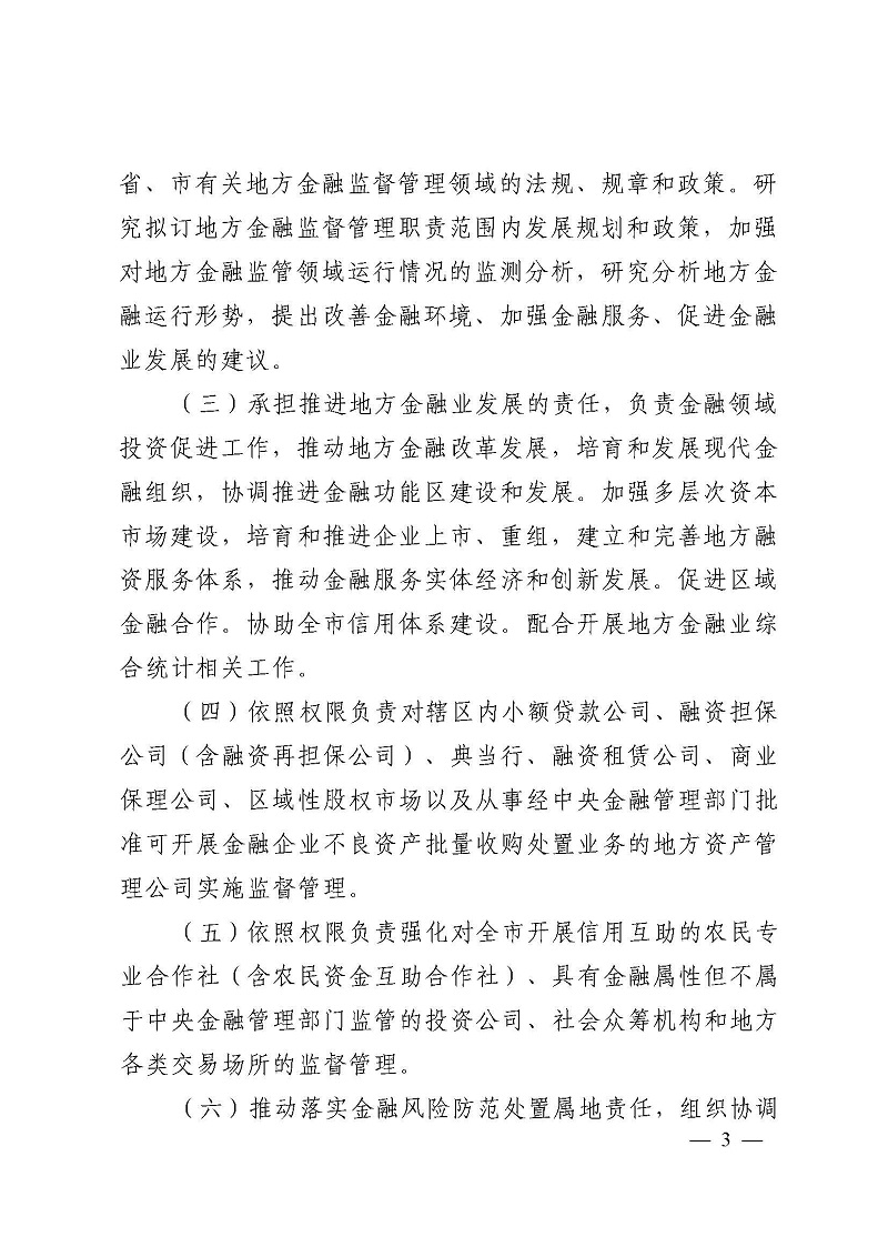 市地方金融监督管理局职能配置、内设机构和人员编制规定