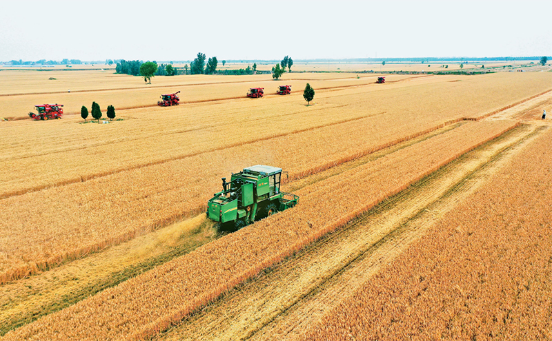 2024年全国夏粮总产量14978万吨(2996亿斤),比上年增加362.7万吨(72.5亿斤),增长2.5%,全国夏粮获得丰收。图为2024年6月4日,在河北省邢台市南和区胡佃村,农机手驾驶收割机开展小麦收割作业。 新华社记者 王晓/摄