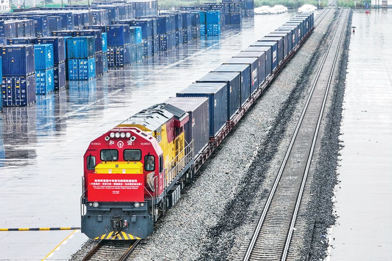 今年以来,我国积极维护国际产业链供应链稳定畅通,有效满足世界市场多样化需求,巩固拓展经贸合作“朋友圈”,国际循环的质量进一步提升。图为2024年6月27日,西部陆海新通道中老泰马跨境铁路班列在重庆江津小南垭站等待发车。 新华社记者 唐奕/摄