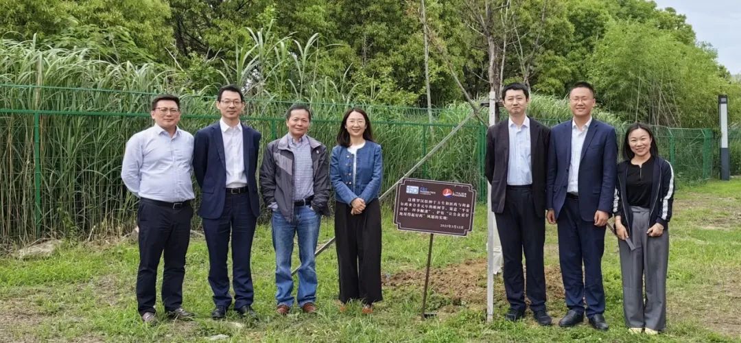 ▲方生和医药全资并购泰利尔药业后,袁方博士(左三)携企业代表与工行相关负责人在利泰尔厂区新植的罗汉松前合影留念。受访者供图