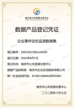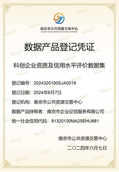 近日,南京市企业征信服务有限公司(以下简称“南京征信”)创新研发的“科创企业资质及信用水平评价”和“企业事件动态监测”两项数据产品,经确权、登记、质量评估、法律合规审查等一系列程序,成功获得南京市公共资源交易中心颁发的数据产品登记凭证。