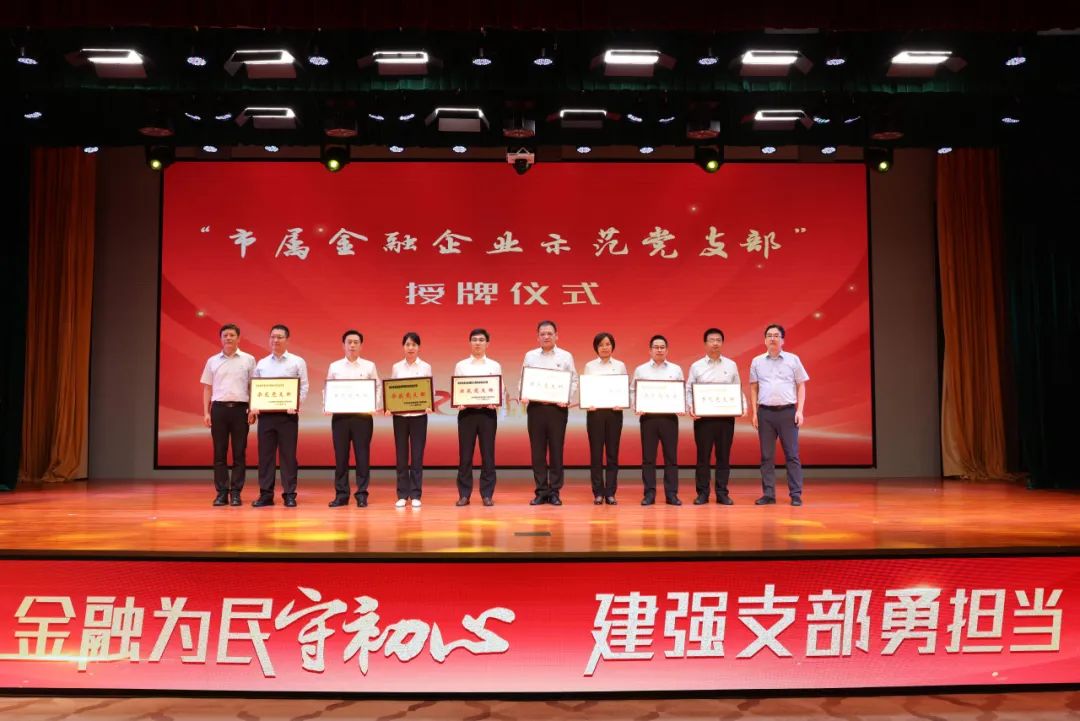 大会现场,主办方还为市属金融企业4个“标杆党支部”、8个“示范党支部”颁发奖牌。标杆党支部代表——南京银行总行机关第二十党支部书记沈萍现场分享了该党支部将党建与业务深度融合,推进科技金融、普惠金融、乡村振兴的经验做法。