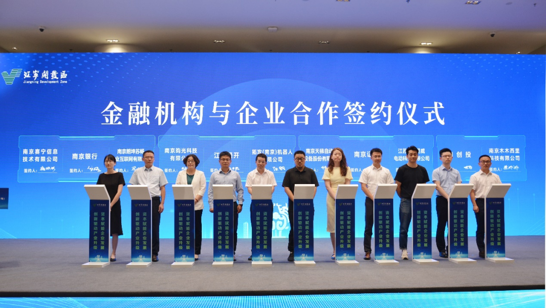 江宁开发区向南京创投集团、南京证券、申万宏源证券、南京银行、工行南京分行、农行南京分行等授予“金融合作伙伴”荣誉称号。南京银行江宁中心支行与南京赛宁信息技术有限公司、南京创投集团与南京木木西里科技有限公司、江宁经开区与拓攻机器人等进行了合作签约仪式。会前,市委金融办、市金融服务中心联合江宁开发区管委会通过问卷调查详细摸排、系统梳理了区内重点企业的融资需求,从信用融资、股权融资、融资担保等多个方面汇总形成企业融资需求手册,并针对性邀请相关金融机构参加,力争为各家企业提供点对点的投融资对接服务。会上,来自江宁开发区的40多家企业积极对接金融机构,展示各自企业在高端装备制造、人工智能、生物医药等领域的优势,道达科技、达迈科技、易安联优3家企业上台进行了路演分享。