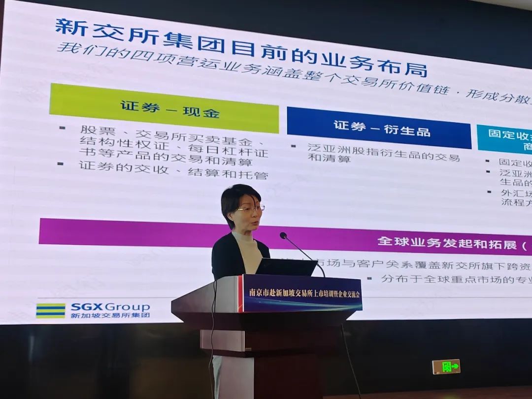 4月2日,南京市委金融办联合新加坡交易所(以下简称“新交所”)共同主办的“南京市赴新加坡交易所上市培训暨企业交流会”成功召开。此次会议由南京市金融服务中心、浦发银行承办。会议旨在为南京本土企业搭建国际资本市场对接平台,深化与新加坡金融合作,助力企业拓宽多元化融资渠道,加速国际化发展步伐。江苏证监局相关处室负责人、新交所代表、金融机构专家及南京13家重点企业代表等50余人参会,共探企业跨境融资新机遇。