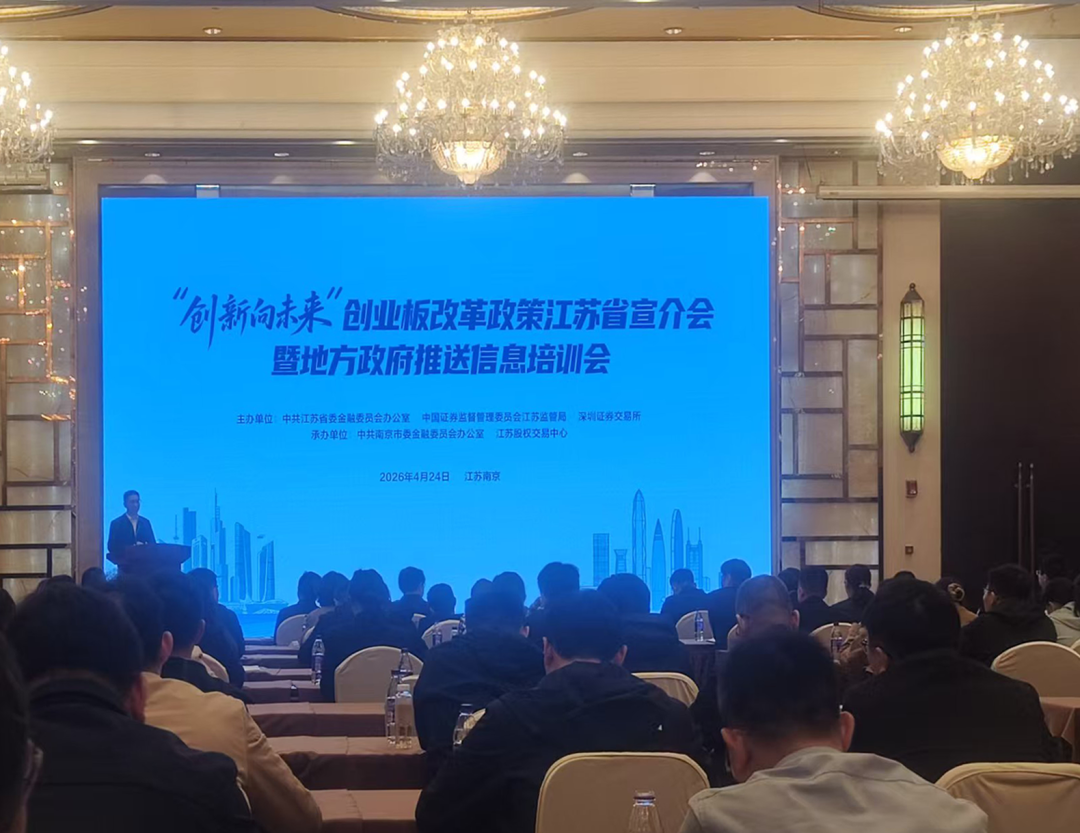 4月24日上午,为抢抓创业板改革机遇,加强政策解读宣介,凝聚市场共识,省委金融办、江苏证监局和深圳证券交易所联合在南京举办深交所创业板改革政策江苏省宣介会。该宣介会以“创新向未来”为主题,由市委金融办和江苏股权交易中心承办。这也是继广东省后,全国范围内举办的第二场省级创业板改革政策专场宣介会,释放出江苏加快培育新质生产力、推动优质创新企业对接资本市场的积极信号。