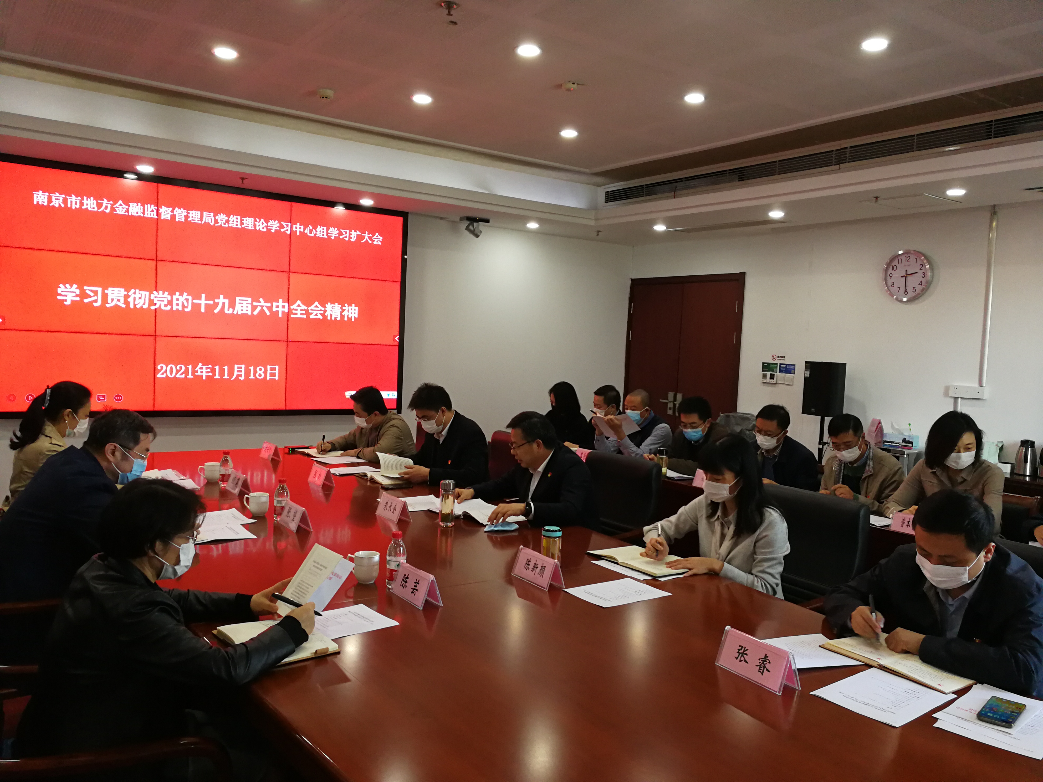 11月18日下午,市地方金融监管局召开局党组理论学习中心组学习扩大会,专题学习贯彻党的十九届六中全会精神。局党组书记、局长朱长会主持会议,各处室(中心)负责人、市纪委监委派驻纪检监察组有关人员参加学习。市委党史学习教育第十指导组组长张望一行2人到会指导。