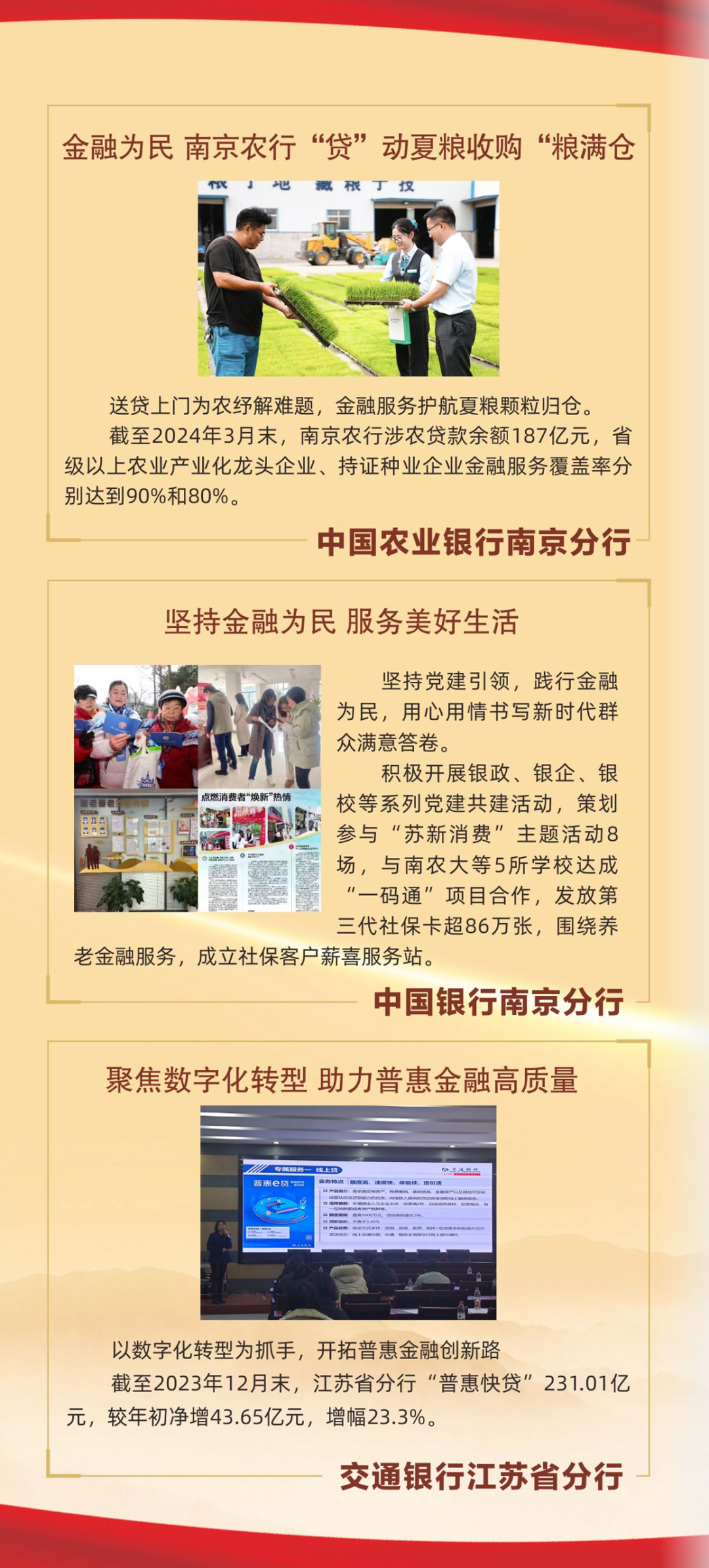 金融一头连着宏观经济大盘,一头连着千家万户对美好生活的向往。大会现场,南京银行运营管理部的党员群众代表通过情景剧形式讲述《沉默是金、点亮爱“鑫”,让金融服务更有温度》,紫金农商银行党员代表孙宇带来演讲《当好“三个角色”,践行农村金融初心使命》,南京证券债权融资总部的党员代表带来情景剧《宁证赋能三重奏》,南京银润典当有限公司代表高雅带来演讲《服务有心 典当有信》,不同的表演形式展示出了金融为民本色,赢得了现场观众共鸣,收获了阵阵掌声。
