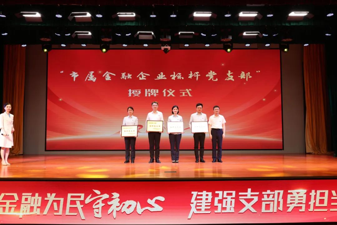 大会现场,主办方还为市属金融企业4个“标杆党支部”、8个“示范党支部”颁发奖牌。标杆党支部代表——南京银行总行机关第二十党支部书记沈萍现场分享了该党支部将党建与业务深度融合,推进科技金融、普惠金融、乡村振兴的经验做法。